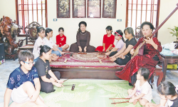 Cứ mỗi dịp cuối tuần, không gian trong ngôi nhà nhỏ của bà Đào Thị Khanh, Chủ nhiệm Câu lạc bộ văn hóa văn nghệ Sông Cầu lại vang lên âm thanh trầm đục của đàn đáy, tiếng nhịp phách réo rắt, tiếng trống chầu rộn ràng, đặc biệt là giọng hát trong trẻo của các em thiếu niên, nhi đồng.