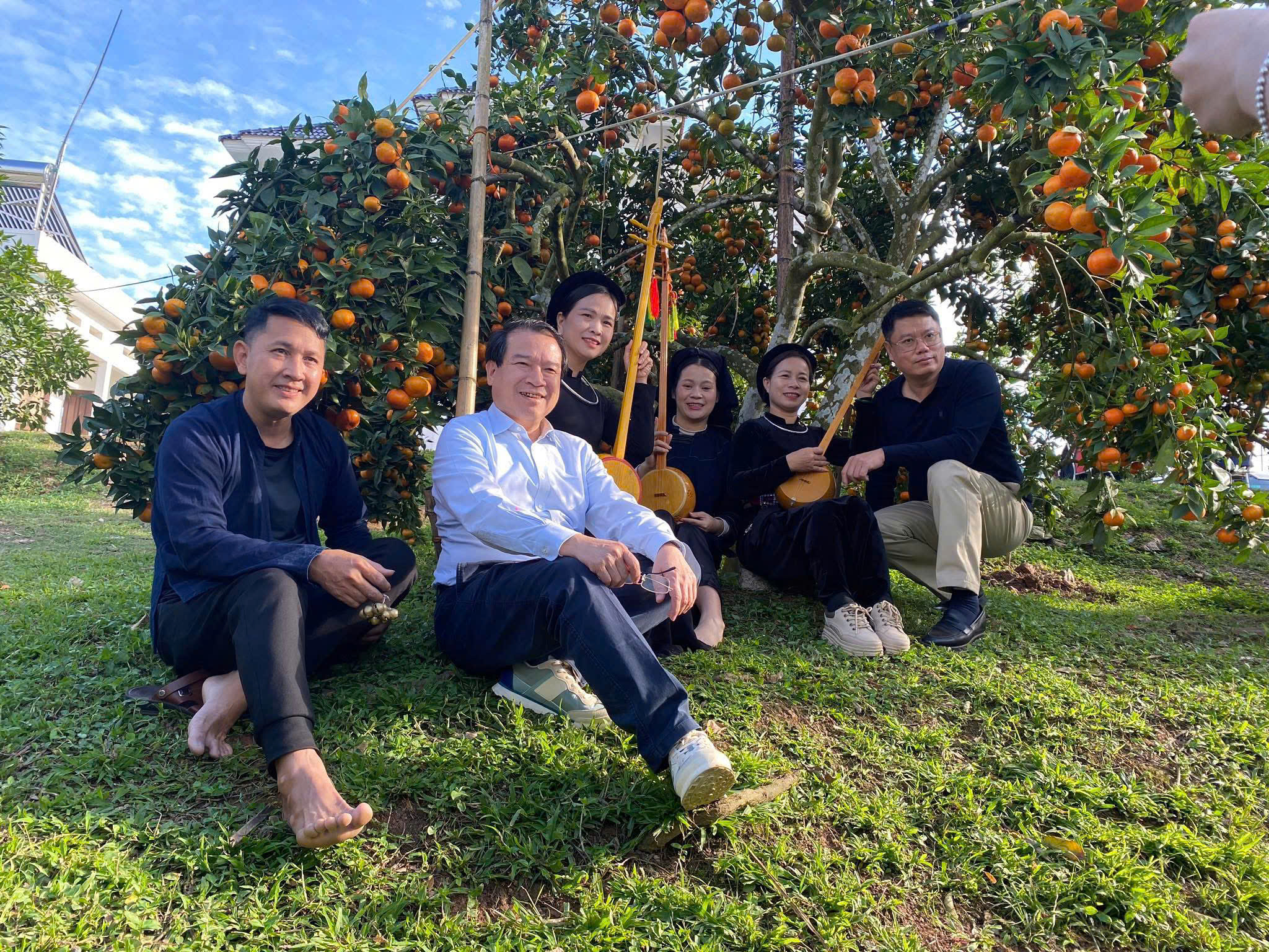 Đoàn khảo sát sản phẩm du lịch, chụp ảnh lưu niệm tại vườn cam Lục Ngạn