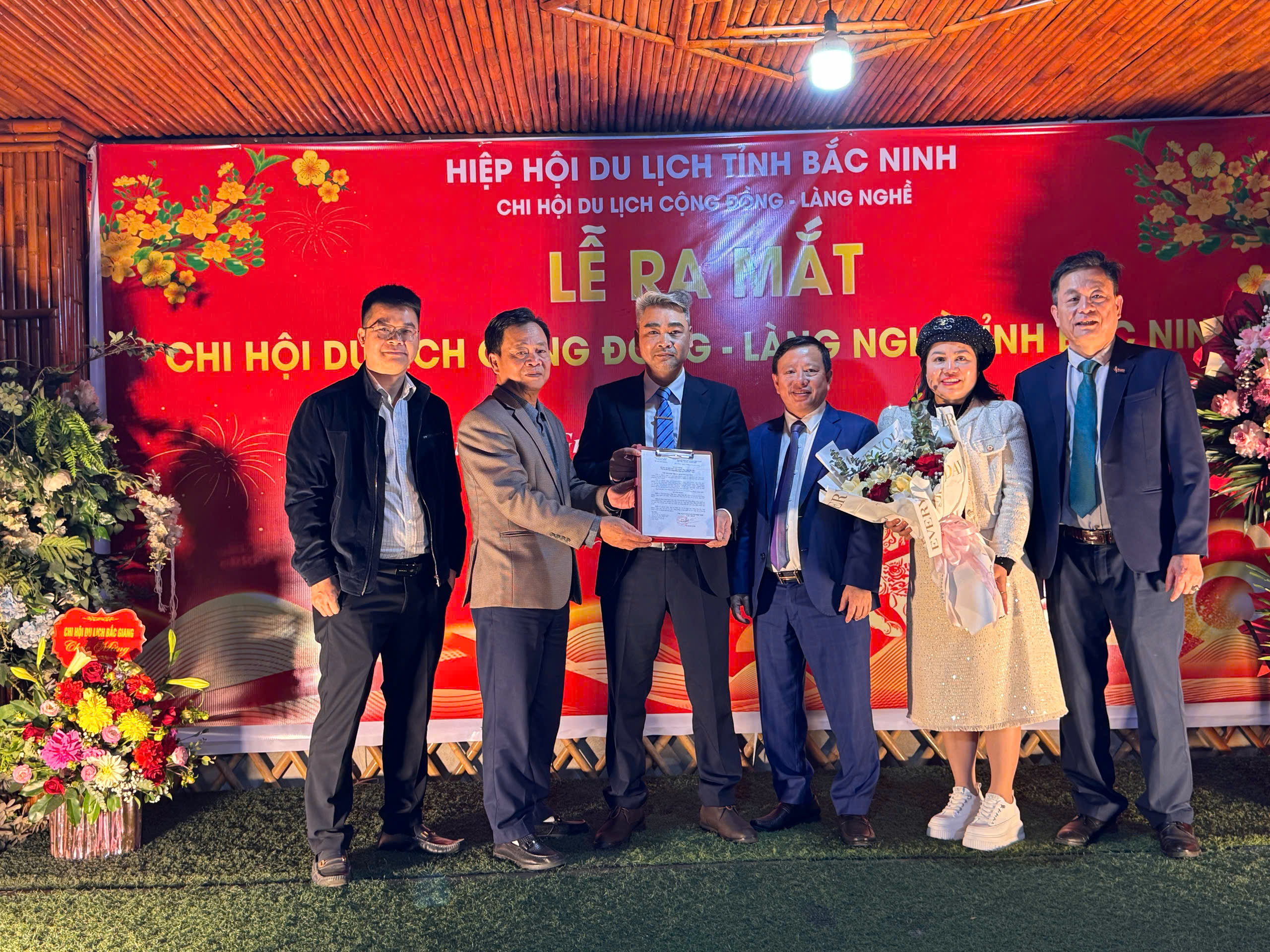Tại buổi lễ, ông Nguyễn Văn Ngọc – Phó chủ tịch, Tổng thư ký Hiệp hội Du lịch tỉnh Bắc Ninh đã công bố Quyết định thành lập Chi hội Du lịch Cộng đồng – Làng nghề, trực thuộc Hiệp hội Du lịch tỉnh Bắc Ninh; Ban Chấp hành Chi hội nhiệm kỳ 2025 – 2030 gồm 07 thành viên trong đó ông Hoàng Văn Hiệp – UVBCH HHDL tỉnh – Giám đốc HTX Đồng giao, điểm du lịch Bầu Tiên – Phường Chũ làm chủ tịch Chi hội, cùng các phó và thành viên, tổng Chi hội có 26 hội viên, là các cá nhân, hộ gia đình, chủ cơ sở làng nghề và đơn vị kinh doanh dịch vụ du lịch cộng đồng - làng nghề trên địa bàn tỉnh.