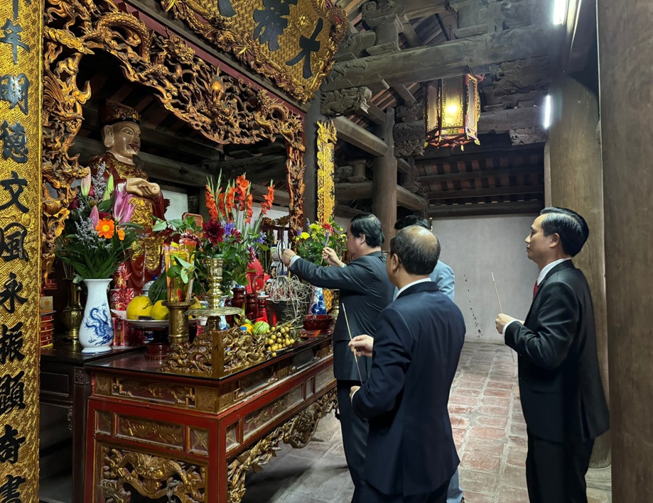 Ban giám hiệu nhà trường cùng các em sinh viên của trường Cao đẳng Công Nghiệp Bắc Ninh dâng hương tại Tiền Đường
