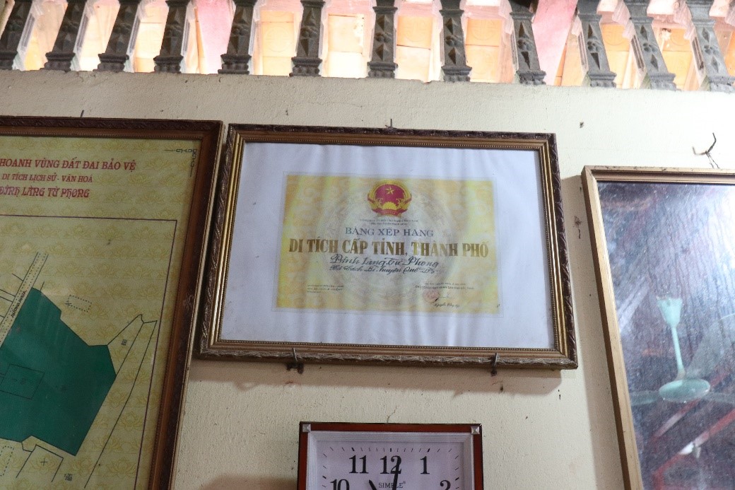 Đình làng Từ Phong đã được xếp hạng là di tích lịch sử cấp tỉnh, quyết định số 354/QĐ - UBND ngày 20/03/2007.
