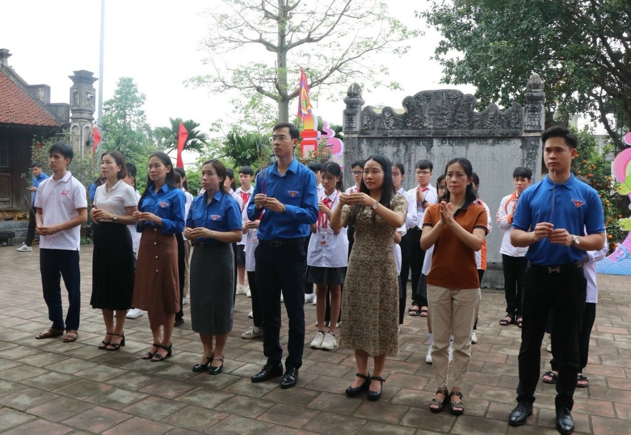 Hội đồng đội tỉnh và 21 em học sinh vòng chung kết cuộc thi “ Măng non Kinh Bắc - Tự hào trang sử quê hương” dâng hương tại Văn miếu Bắc Ninh