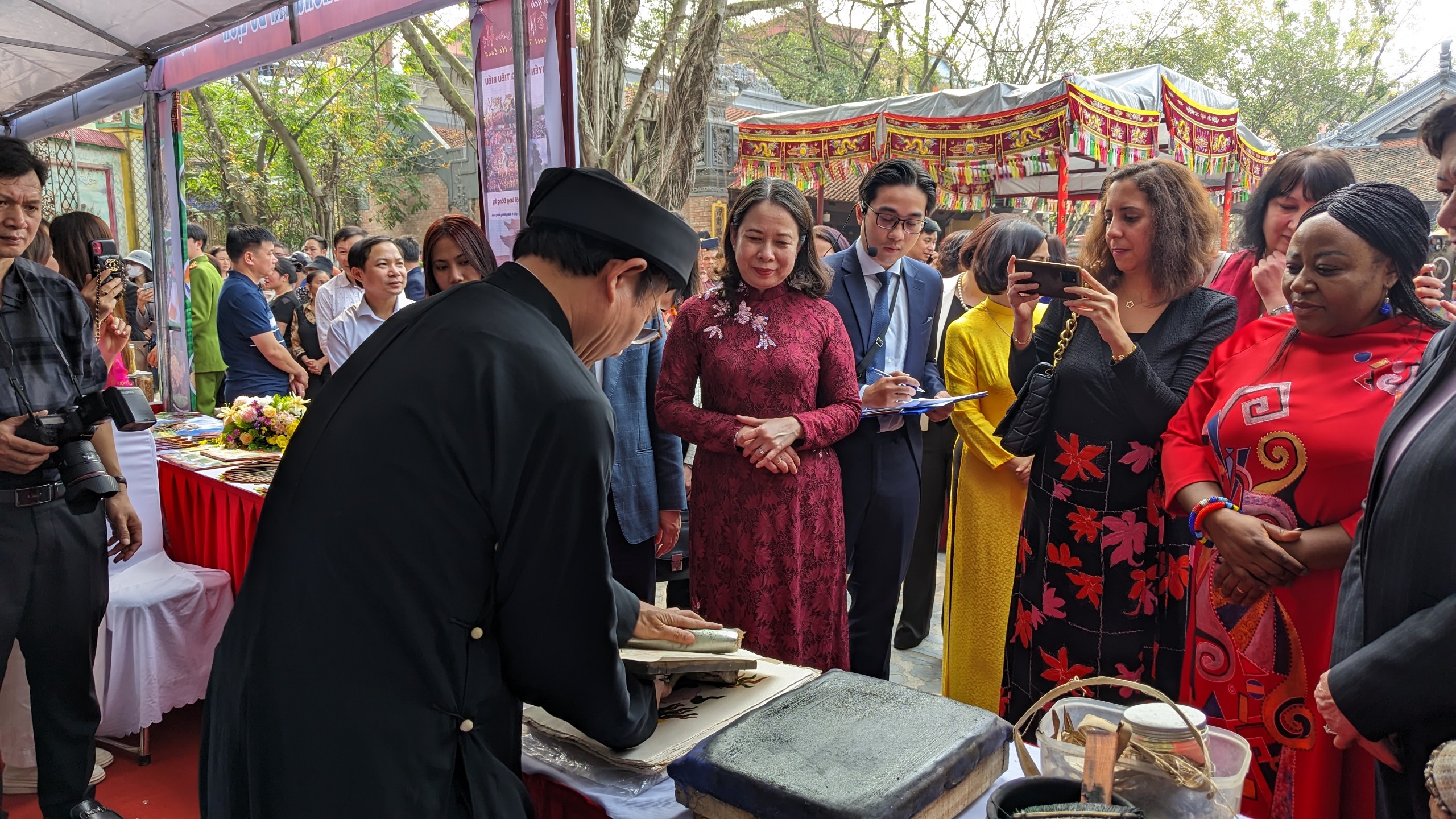 Phó Chủ tịch nước Võ Thị Ánh Xuân và đoàn nữ Đại sứ, trưởng Đại biện, các cơ quan đại diện tổ chức quốc tế về du xuân tại thành phố Từ Sơn