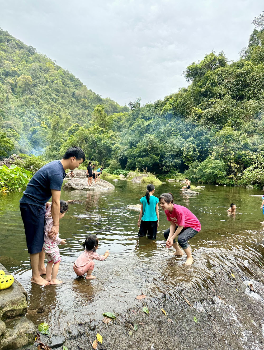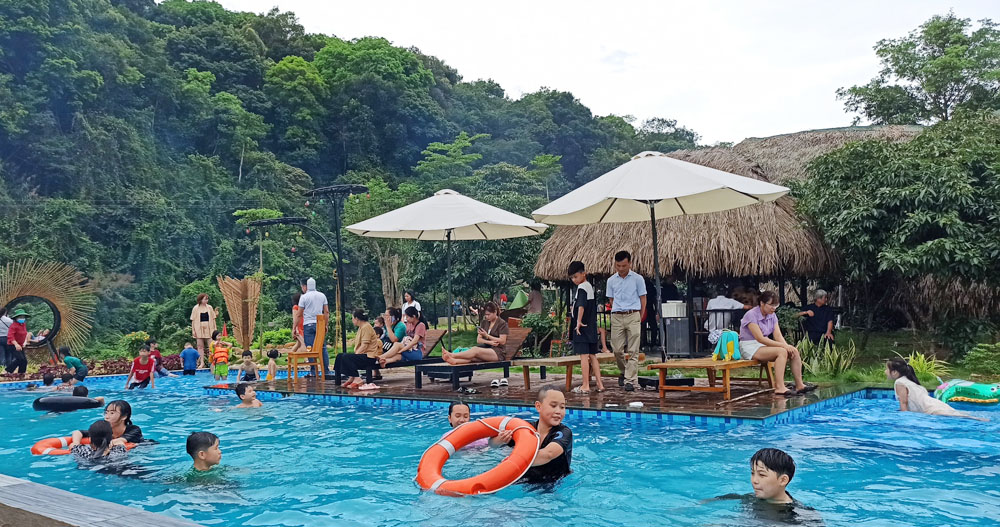 Nhiều gia đình đến Khu du lịch sinh thái Khe Rỗ (Sơn Động).