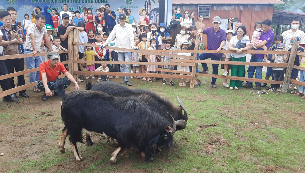 Khách tham quan xem chọi dê tại điểm du lịch cộng đồng Bản Ven, xã Xuân Lương (Yên Thế).