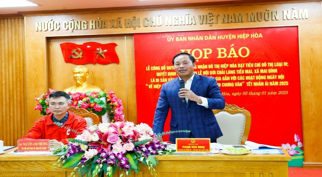 PCT. UBND huyện Hiệp Hòa Phạm Văn Nghị tại buổi họp báo thông tin về Ngày hội