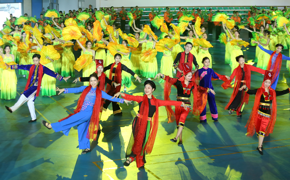 Ngay sau phát biểu khai mạc là chương trình đồng diễn nghệ thuật với chủ đề "Bắc Giang đoàn kết-Đổi mới-Mạnh mẽ-Phát triển bền vững". Chương trình gồm 3 chương, 8 cảnh diễn, thời lượng 35 phút với sự tham gia biểu diễn của hơn 600 người, gồm nhiều lực lượng (quân đội, học sinh, diễn viên đoàn nghệ thuật, VĐV võ thuật chuyên nghiệp, nhóm khiêu vũ thể thao, Aerobic, ca sĩ).