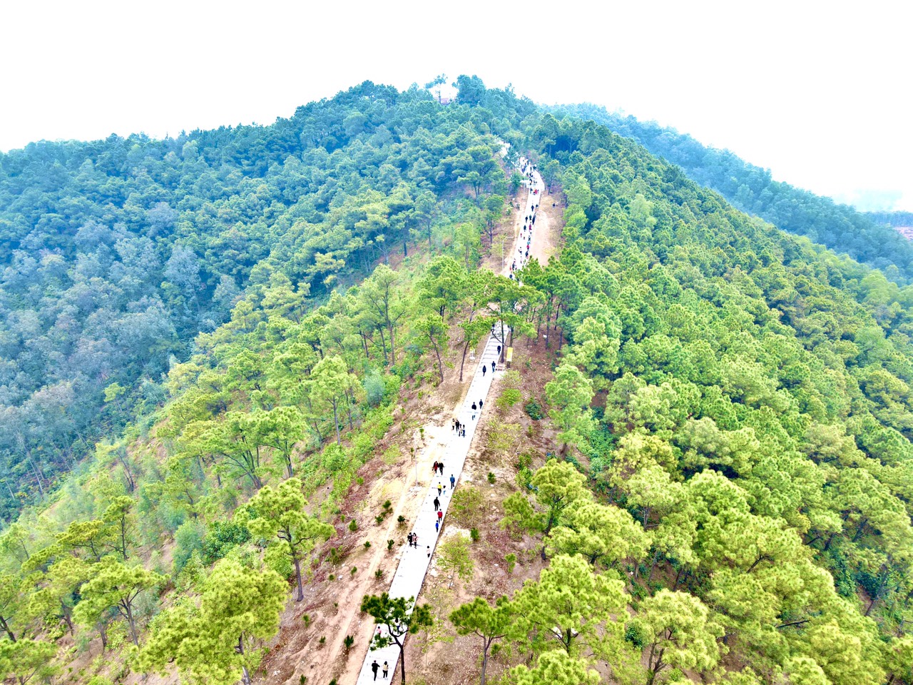 Sau khoảng 45 phút đồng hồ leo núi đền Mẫu và đền Thượng hiện ra trước mắt du khách giữa quần thể rừng thông cổ thụ bao bọc. Lên cao những làn gió thổi xuân liên tục tạo ra âm thanh từ những chùm lá Thông ru hát reo vi vu trong nắng. Du khách sẽ cảm giác xua tan hết những mệt mỏi sau chặng đường leo núi trải qua 450 bậc đá tới đền.