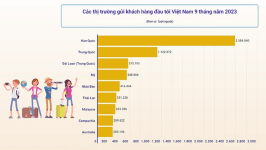 Với lượng khách quốc tế tiếp tục vượt qua mốc 1 triệu lượt người trong tháng 9, chỉ trong 9 tháng đầu năm 2023, du lịch Việt Nam đã đón gần 8,9 triệu lượt khách, hoàn thành và vượt chỉ tiêu đón 8 triệu khách quốc tế của cả năm. Tuy nhiên, so với cùng kỳ năm 2023, khách quốc tế đến Việt Nam trong 9 tháng qua vẫn chỉ đạt 69%.